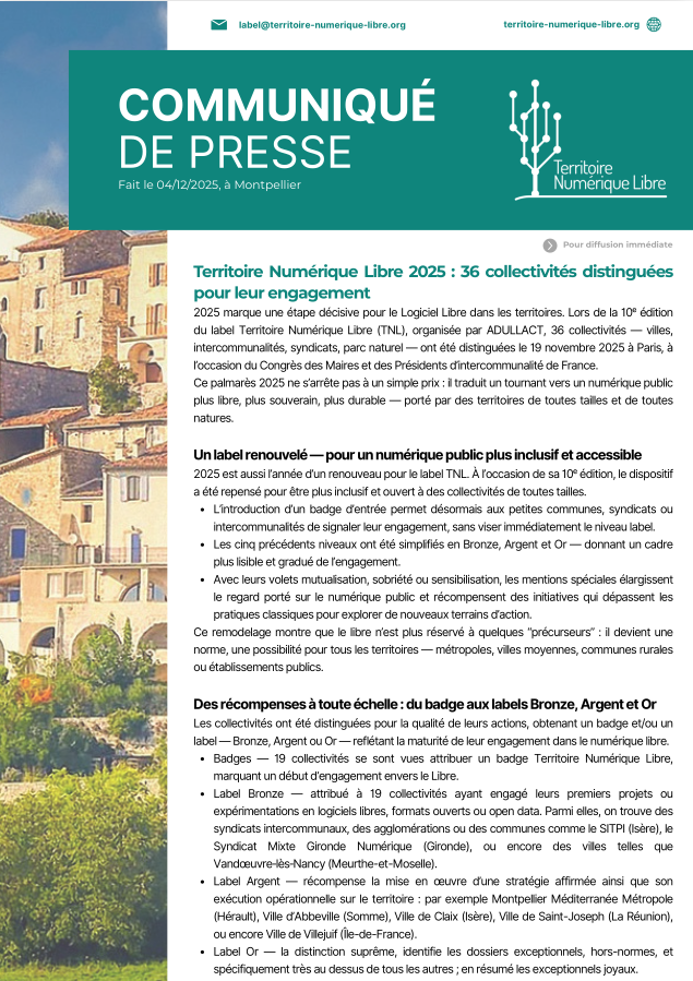 Le logo et la signalétique du label Territoire Numérique Libre sont disponibles sous licence Creative Commons CC BY-SA 4.0.